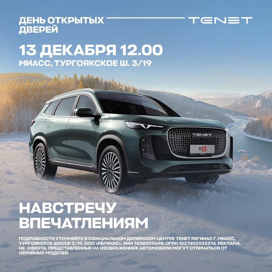 Приглашаем всей семьей на праздник «Навстречу впечатлениям с TENET»! 13 декабря с 12:00 ждем вас в нашем дилерском центре CHERY & TENET Регинас на день открытий, эмоций и подарков.